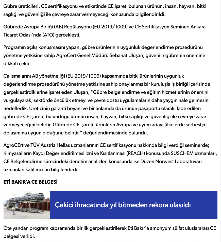 Gübrede CE Sertifikasyonu Semineri Düzenlendi - Başkent