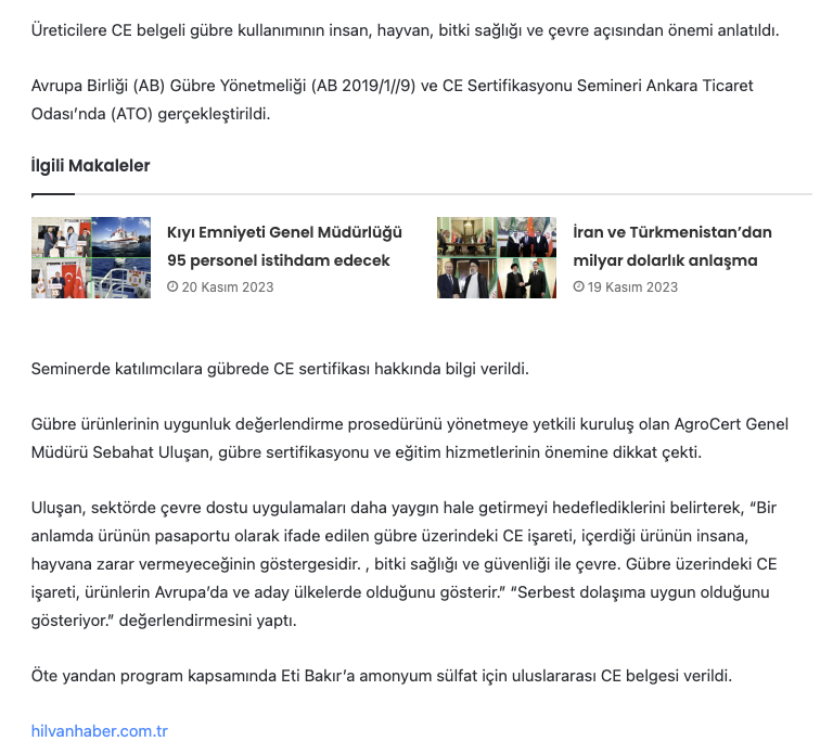 Gübrede CE sertifikasyonu semineri düzenlendi - Haber Bakırköy